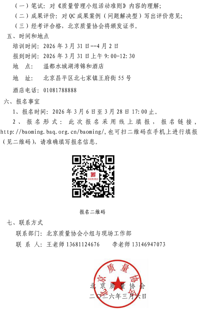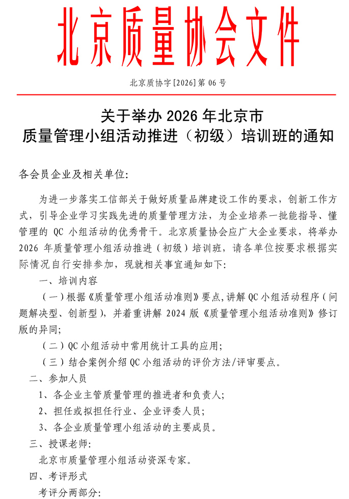 • 关于举办 2026 年北京市质量管理小组活动推进(初级)培训班的通知